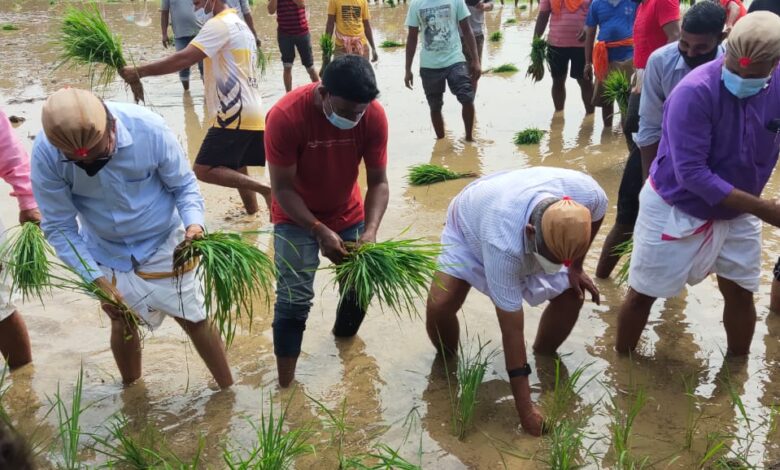 ಕಕ್ಕುಂಜೆ 60 ಎಕರೆ ಹಡಿಲು ಭೂಮಿ ಕೃಷಿ ನಾಟಿ – ಸಚಿವರಾದ ಮಾಧುಸ್ವಾಮಿ – ಶಾಸಕ ರಘುಪತಿ ಭಟ್ ಚಾಲನೆ!