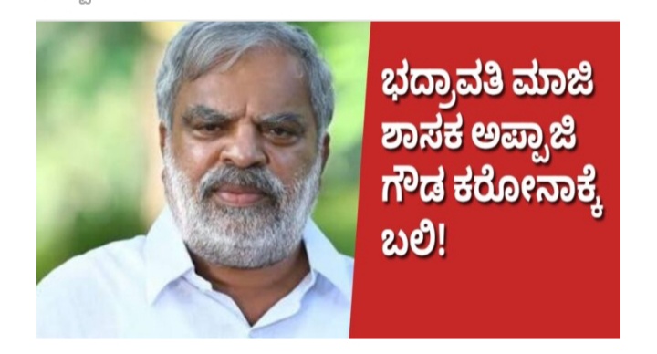 ಶಿವಮೊಗ್ಗ :- ಭದ್ರಾವತಿ ವಿಧಾನಸಭೆ ಕ್ಷೇತ್ರದ ಮಾಜಿ ಶಾಸಕ ಎಂ.ಜೆ.ಅಪ್ಪಾಜಿಗೌಡ ಕರೋನಾ ಮಹಾಮಾರಿಗೆ ಬಲಿಯಾಗಿದ್ದಾರೆ.