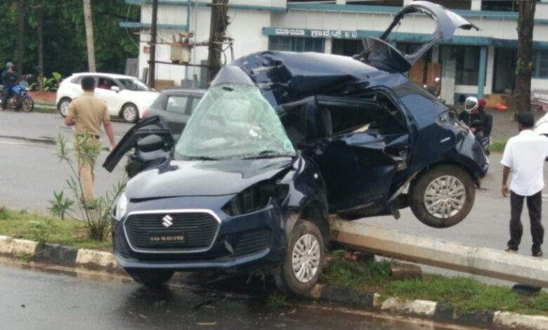 ಮಂಗಳೂರಿನಿಂದ ಉಡುಪಿಯತ್ತ ಸಾಗುತ್ತಿದ್ದ ಕಾರು ಹಳೇ ಮೆಸ್ಕಾಂ ಕಚೇರಿಯ ಸಮೀಪ ಚಾಲಕನ ನಿಯಂತ್ರಣ ತಪ್ಪಿ ಹೆದ್ದಾರಿಯ ಡಿವೈಡರ್ನ ಮೇಲಿನ ವಿದ್ಯುತ್ ಕಂಬಕ್ಕೆ ಡಿಕ್ಕಿ ಹೊಡೆದಿದ್ದು, ವಿದ್ಯುತ್ ಕಂಬ ನೆಲಕ್ಕುರುಳಿದೆ.