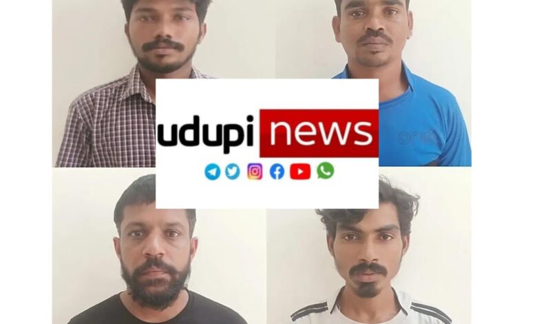 ಶೃಂಗೇರಿ ನಿವಾಸಿ ಗೋಪಾಲ (೨೬), ಕೊಕ್ಕರ್ಣೆ ನಿವಾಸಿ ಅರುಣ (೨೬), ಚೇರ್ಕಾಡಿ ನಿವಾಸಿ ರವಿ ಕುಮಾರ್, ಮತ್ತು ಸಾಸ್ತಾನ ಗುಂಡ್ಮಿ ನಿವಾಸಿ ರಜಾಕ್ (೪೧) ಬಂಧಿತರು.
