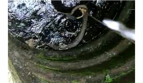 ನೀರಲ್ಲಿದ್ದ ಹಾವು ಮೇಲೆ ಬರಲು ಹೆಣಗಾಡುತ್ತಿದ್ದುದನ್ನು ಗಮನಿಸಿದ ಮನೆಯವರು ಮತ್ತು ಸ್ಥಳೀಯರು ಅದರ ರಕ್ಷಣೆಗೆ ಮುಂದಾಗಿದ್ದಾರೆ. ಅದೊಂದು ವಿಷಪೂರಿತ ಹಾವೆಂದು ಗೊತ್ತಿದ್ದರೂ ಜನರು ಅದನ್ನು ಲೆಕ್ಕಿಸದೆ ರಕ್ಷಣೆ ಮಾಡಿದ್ದಾರೆ. ಮಳೆ ನಡುವೆಯೇ ರಕ್ಷಣಾ ಕಾರ್ಯಾಚರಣೆ ನಡೆದಿದೆ.